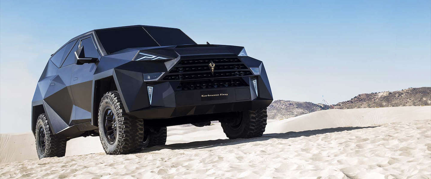 Ooit gedroomd in je eigen Batmobiel te hebben, vanaf nu kan dat maar dan moet je snel zijn want van de meest extreme Karlmann King worden er maar 10 gemaakt. Deze mondiale monstertruck, blijkbaar nog steeds omschreven als een SUV en gebouwd op het platform van een Ford F-550 is ontworpen door een Chinees bedrijf en wordt gebouwd in het westen.