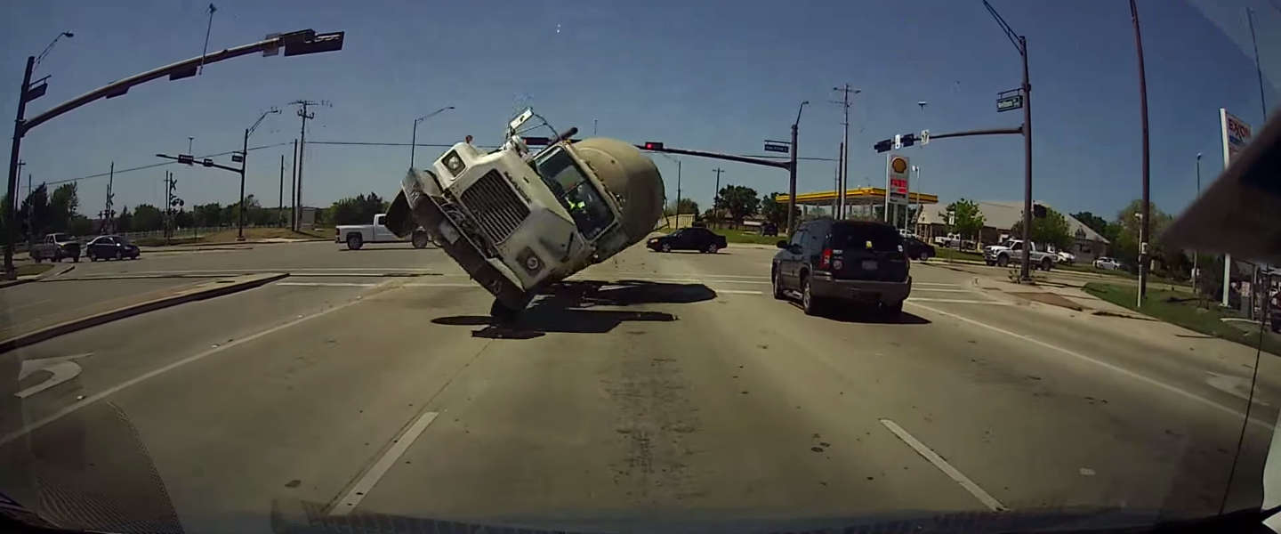 Dit zou best wel een van de engste dashcam video’s ter wereld kunnen zijn. Stel je voor dat je voor het rode licht staat te wachten terwijl aan de overkant een vrachtauto door het rode licht komt denderen en recht op je af rijdt. De bestuurder probeert nog bij te sturen, maar dat mislukt. De vrachtwagen kantelt op zijn zijkant en schuift zo in de richting van jouw auto. Op dat moment kijk je de dood bijna letterlijk in de ogen.