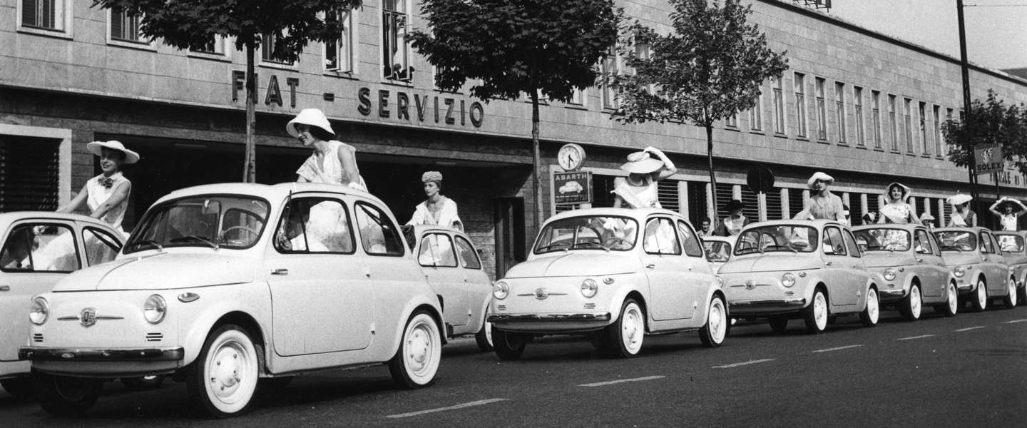 Op 4 juli 1957 reden de eerste 500’s de fabriek uit, met in ieder exemplaar een passend exemplaar: een schoonheidskoningin. Het zal op die dag rustig geweest zijn op de catwalks van Rome en Milaan, want op dezelfde dag reed er in Rome een stoet met andere modellen van het Colosseum naar het Vaticaan.