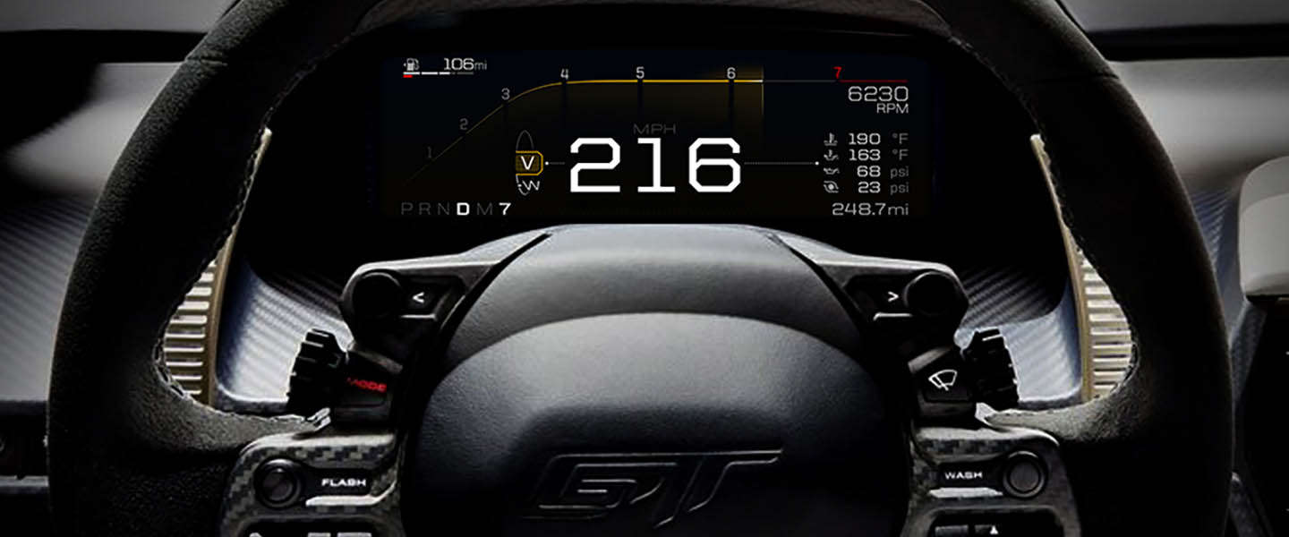 Het volledig digitale instrumentendisplay zal behalve in de nieuwe Ford GT ook worden toegepast in andere toekomstige Fords.