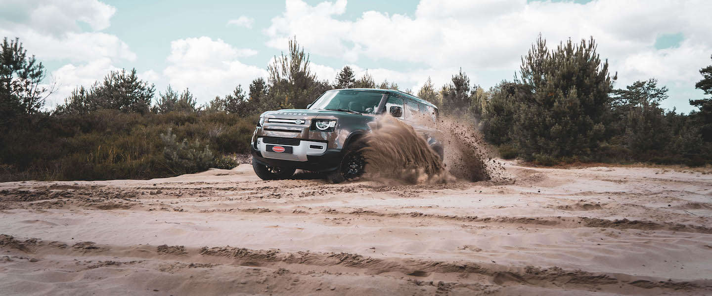 En zo is het precies met de nieuwe Defender. Met de elektronisch gestuurde luchtvering die desgevraagd 10 centimeter omhoog gezet kan worden is geen kuil, rots of rivier ooit nog een probleem. Het is mogelijk om elektronisch in te stellen op wat voor ondergrond je rijdt en de auto past zich hier op aan. Met de automatische modus kiest de auto zelf welke het beste werkt. Als we ons een weg banen door het mulle zand merk je goed dat de computers van de auto hun werk keurig doen. Je voelt dat de banden grip zoeken, de gasresponse zal zich aanpassen om optimaal grip te houden.